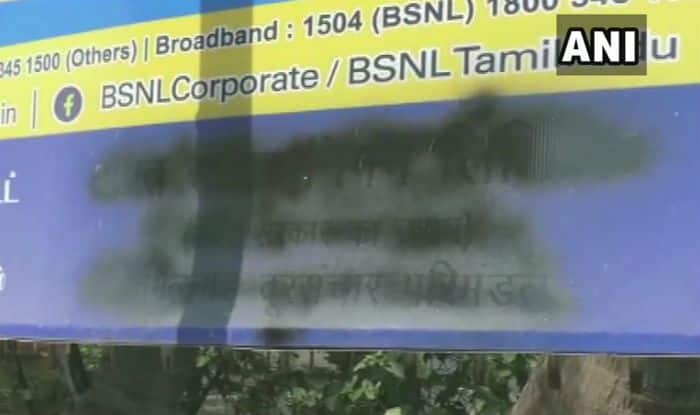 Chennai: Amid the raging controversy over the draft national education policy, which favours making the teaching of Hindi compulsory up to class 8, the text in Hindi language on signage’s at BSNL office, Post Office and outside Trichy Airport were found painted black on Saturday.