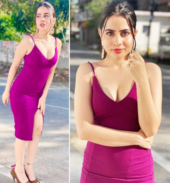 Ending right below her knees, the dress had a thigh-high slit and Urfi teamed it with a pair of brown heels.