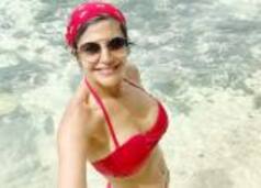 Mandira Bedi looks sexy as she wears hot and sexy red bikini