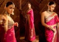 Alia look gorgeous in the read saree, the Jigra actress was all set to meet PM Modi in New Delhi.