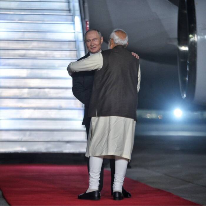 After exchanging a friendly hug, Prime Minister Modi and Russian President Putin had a word of welcome. They were both seen laughing at the airport.