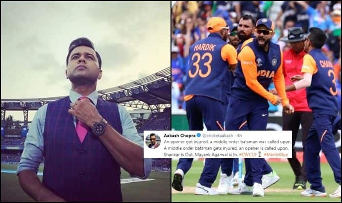 ICC Cricket World Cup 2019: Cricketer-turned-commentator Aakash Chopra is someone who is razor-sharp when it comes to analysing the game. With the World Cup on, Chopra made a statement after injured Vijay Shankar was ruled out of the tournament. Mayank Agarwal in all likelihood will be joining the Men in Blue soon. Chopra has made a valid point where he feels that it is strange that India is replacing opener with middle-order players and vice-versa. He cited the example of Shikhar Dhawan being replaced by Pant and Shankar replaced by Mayank. “An opener got injured, a middle-order batsman was called upon. A middle-order batsman gets injured, an opener is called upon. Shankar is Out. Mayank Agarwal is In,” read his post.