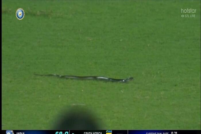 The second T20I being played between India and South Africa at Guwahati, Assam had to be stopped after a snake slithered onto the cricket field.