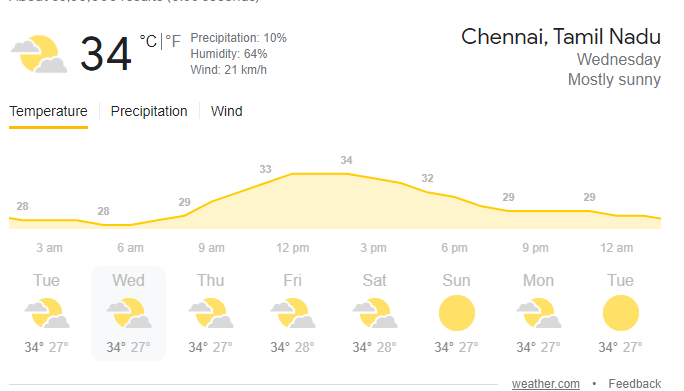 Chennai Weather for PBKS vs SRH IPL 2021 match. Image Credits: Google