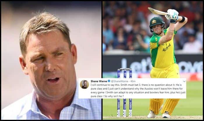 Shane Warne Slams Selectors For Not Allowing Steve Smith to Bat at No 3 During England vs Australia ICC Cricket World Cup 2019 Game | SEE POST