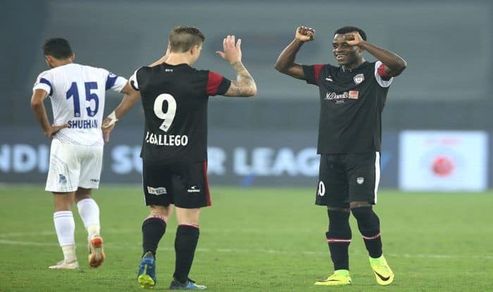 Romeo Fernandes’ poor pass back to Pritam Kotal was intercepted by Gallego who charged down the left flank and squared the ball to Ogbeche. The Nigerian forward sent the ball into the net to complete NorthEast United’s masterclass here.