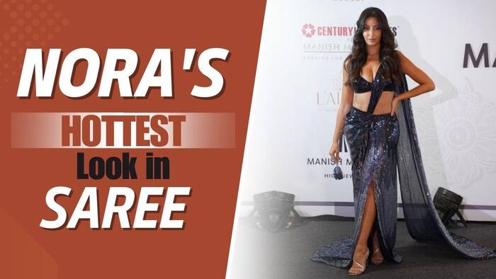 Nora Fatehi at Manish Malhotra’s show: Celebrity designer Manish Malhotra showcased his new collection of bridal couture in Mumbai on 20th of July. Several Bollywood stars glammed up the event in their best avatars. Nora Fatehi, too was present at the event in her most stylish look. The actress donned a sexy blue sequined saree, Dilbar girl was seen flaunting her curves at the event. Watch video.