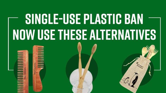 Single use Plastic Ban: Climate change and global warming are two big issues that the world is facing. Out of which, plastic pollution is one of the most persistent problems of today. The Indian government has banned single-use plastic items from July 1st, 2022. There are many items have been banned which were a part of the daily lifestyle. In this video we have shared some alternative products that can easily replace the single-use plastic products such as biodegradable cutlery, bamboo toothbrushes, copper bottles, cloth bags.