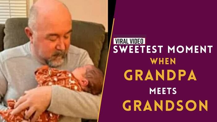 Viral Video: A video of a grandpa has gone viral on internet. In this video a grandpa meets his baby grandson for the first time. This video shows how emotionally a grandfather reacts after seeing this kid. A man carrying a little baby in a carrier into house. Grandfather gets extremely emotional. He sits down and places his hands on the little baby. This video was shared by Good News Correspondent on Insta. This video has more than 34k views.