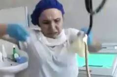 On realising that there was something inside her stomach, doctors put her under general anaesthetic. Footage of the treatment has surfaced showing the gloved hands of a doctor removing the unidentified thing, after inserting a tube down her throat.