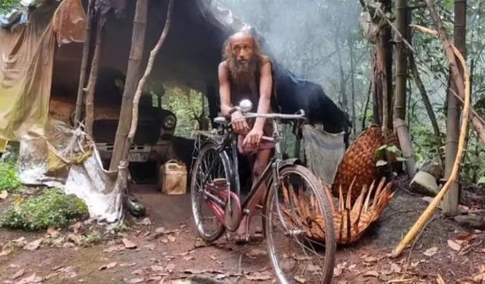 During Covid times when the villages were shut, he survived by eating wild fruits in the forest. He travels on his bicycle to villages to sell his baskets made of dried creepers in the forest.