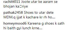 One user wrote, “Kareena has no sense at all wearing shoes while eating food on ground with other’s … Shame on her” while the other commented, “Who the hell wears a shoe to somebody’s house ? Aamir is barefooted and that doltish lady doesn’t even have the courtesy of removing her shoes before getting into the house.”