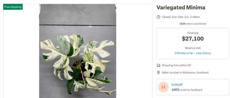 The indoor plant was being sold on New Zealand’s auction website Trade Me and the winner was from Auckland.