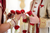 It shows a bride and groom standing on the stage before their jaimala ceremony when it is time for them to feed each other sweets but to everyone’s shock, they instead give each other tight slaps.