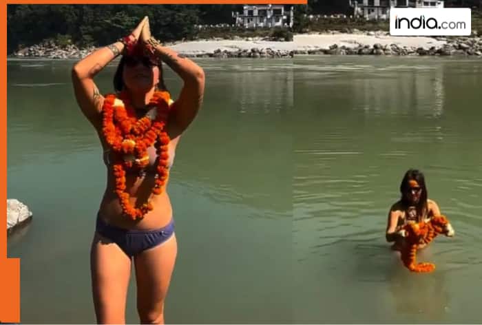 Woman In Bikini Takes Holy Dip In River Ganga: Amid the festive month, a viral video of a foreign woman has gone viral on the internet, sparking a debate on social media platforms. The female tourist took a holy dip in the Ganga, but this is not the problem; rather, her choice of attire while taking the dip has angered people on the internet, hurting their religious sentiments. In the video, the woman can be seen taking a holy dip in the Ganga wearing a bikini. The video was shot near Rishikesh’s iconic Lakshman Jhula. This video has created a stir on social media platforms, sparking a heated debate over where to draw the line between personal freedom and cultural sensitivity.