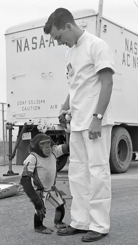 Apes and monkeys, including chimpanzees, macaques, and rhesus, were sent into space.